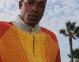 The underlying canvas is covered in flowing fabrics that remind us of wallpaper slowly coming down from the wall. Gradients of colors reference the slight colour changes the light can make on a curtain. Classical, modern evening wear reminiscent of Madeleine Vionnet is combined with masculine tailoring and sports elements like boxer shorts, bomber jackets and fuzzy sweaters.