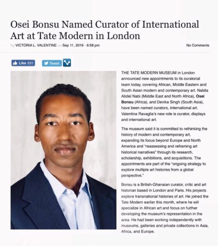 Osei Bonsu curator of international art at Tate Modern