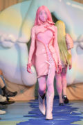 Neith Nyer was founded in Paris in 2015 by Francisco Terra. Neith Nyer is the name of a Greek Goddess as well as the name of Terra’s grandmother. Terra grew up in Brazil and was one of the very few live shows during Paris Menswear. I’ve attended all of Terra’s shows and this was no exception. It took place at the Consulat, formerly an electricity sub-station. Terra was not on the official fashion calendar, for one thing he believes that young brands are made on Instagram and by celebrities wearing his clothes. Miley Cyrus wore one of his pink dresses and the model Bella Hadid appeared on social media in one of his silk skirts and latex tops, these appearances increased his sales.