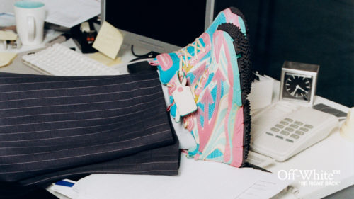 “BE RIGHT BACK” is a shoe inspired by wellness, but flips expectations of the term to prioritize the wearer’s needs. To “BE WELL” can mean whatever an individual needs it to mean, whether that’s a meditative walk or a night out on the dance floor. The shoe is a sequel to founder Virgil Abloh’s “OUT OF OFFICE” sneaker that launched in 2020, revisiting the importance of committing to yourself and the promise of becoming the greatest version of you.