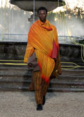 The show’s atmosphere was one of gentle elegance and understated drama. Guests sipped cocktails infused with gin, ouzo, and Japanese tea, served by waiters in pleated jackets, while models wandered among the garden’s sculptures and frescoes. There was no designer bow, no climactic finale—just a sense of reverence for the clothes and the legacy they carried.