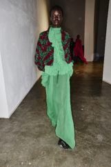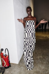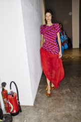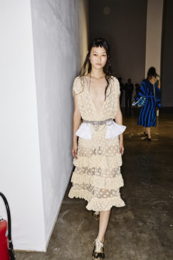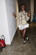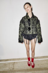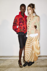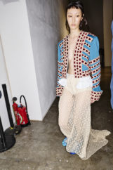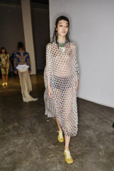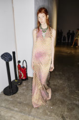 The atmosphere vibrated with the sound of waves—Philip Glass’s delicate notes mingling with hints of surf rock—inviting the audience to exhale and float, lost in the gentle rhythm of tide and breeze. Jewels clustered on garments like shells collected from the shore, while slouchy knits and capacious bags invited escape and adventure, every detail reinforcing the designer’s vision of joyful, unfiltered intuitiveness.
