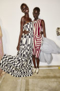 On the runway, the collection blended the elegance of a wetsuit with the playful grandeur of summer, echoing the clean lines of surfers in the sunset: small, rounded raglan shoulders and fluid Bermudas rippled alongside regal tailoring enlivened by foaming ruffles and stiff boards. Colors shifted gently from subtle whites to bold saturations, as if the sky were blushing above the water; graphic embroideries and geometric overlays recalled black ink sketches dissolving in sunlight.