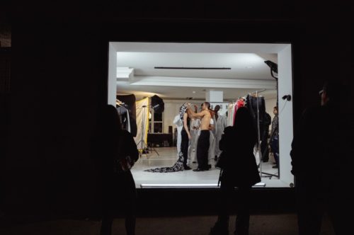 For Luis De Javier, his SS26 collection is about rejecting this tradition and embracing a concept in which the process itself became the highlight. What is usually hidden was brought forward, as a 24-hour performance showcased the designer and his team completing final touches, shooting the lookbook, and creating e-commerce visuals for the collection.