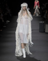This SS26 show channels the haunted beauty and kinetic energy of Ann Demeulemeester’s legacy, played on Gallici’s own rock-and-roll frequency. The result? A collection that walks the line between daydream and afterparty, with every garment taking its place onstage.