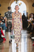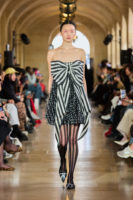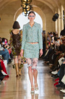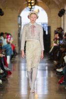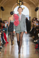 Skirts, dresses and blazers form the backbone of the collection, each piece intricate with embroidery, embellishment and expressive print. Playful knee-high socks and brightly coloured tights add a sense of spontaneity and youthful delight, recalling the simple joy of getting dressed. Tailored jackets and lightweight trenches bring balance, grounding the collection in sophistication and maturity. Romantic motifs such as bows, ruffles and florals recur throughout, but their meanings are reimagined. Once emblems of girlhood, they now suggest quiet confidence and independence.