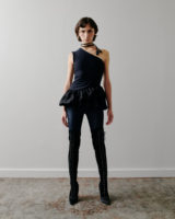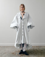 The tulip’s anatomy informs the garments. Pleats trace the geometry of petals, while asymmetrical lines and stirrup leggings recall the curve of a stem. Sleeves unfurl, hems extend unevenly, and silhouettes shift between tailored control and organic flow, guided by a form-first sensibility.