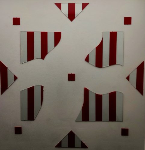 Greenberg scenographed surprise itself. We gaze at his intense bodies, yet we had not expected such total scenography. And we realize now: perhaps Buren is the most sensual of geometrists, and Miles Greenberg the most meticulous of sensualists. Geometry guides the eyes indeed, but imperfection delivers a subtle chill. Within the space, a fractured red-striped square interrupts expectations. In contrast, Greenberg’s textures are precise, his theatricality underscored by refined plinths and striated aluminum. Rather than a collection of four-handed works, this exhibit unfolds as a dynamic dialogue about light.
