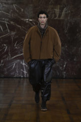 He explains the design philosophy with disarming clarity: by moving a classical element from its familiar place and creating a parallel reality, the wearer identifies with the piece as their own. Your body takes on its own life shaped by these clothes. Your shoulders are going to the front. Your back becomes wider and larger. Your arms are bending a bit. Your waist flares. Your pants are long and pooled into socks. The result is a subtle shift in posture and presence; the body is not idealized but re‑authored, allowed to be slightly excessive, slightly “too much,” without apology.