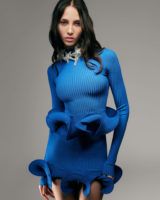 Conceived to feel rebellious while retaining Koma’s signature sensuality, the collection stars supermodel Yasmin Wijnaldum, who steps into the role of a modern superhero. True to its DC roots, crimson red and azure blue dominate the palette, while black, metallic silver, and gold are woven throughout. Dramatic silhouettes—exaggerated shoulders paired with tightly cinched waists—are offset by bouncy, engineered hems, resulting in an aesthetic that feels both futuristic and commanding.