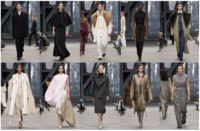 Leoni frames the season around essential wardrobe archetypes—suits, trench coats, blousons, coats, and dresses—infused with sharp minimalism and untouchable sophistication that echoes her archival research. Styled with stilettos, flats, boots, clutches, duffel bags, and tone-on-tone gloves for a polished, sensual attitude, while hedonistic qualities manifest through power suits and leather trenches.