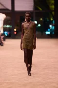 Opening and closing the show, we saw riffs on the revered suit. Having revisited Le Smoking many times during his ten-year tenure, Vaccarello also introduced daytime versions this season in dark pinstripes and with more relaxed linings—a touch more casual but never truly casual. Paired with dark sunglasses and slick side-part updos, the models glided along the runway with the seductive power that others attempt but only YSL seems to achieve.