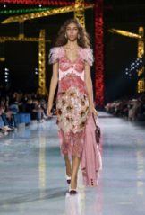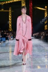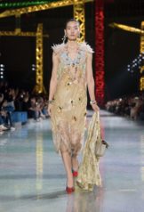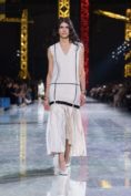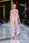 The Grand Palais was transformed into a kind of celestial construction site, an illuminated solar system of light and shadow where silhouettes seemed to hatch rather than simply appear. Day slid into night like a time‑lapse of a chrysalis turning to wing, the clothes tracing that arc from the caterpillar of pragmatism to the butterfly of spectacle without ever losing their structural logic. What impressed was not just the beauty of the image, but the sense that every seam was an axis of transformation: jackets that opened like portals, skirts that broke into movement as if the fabric had remembered it once was air.