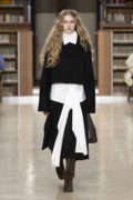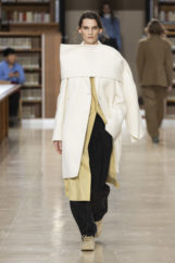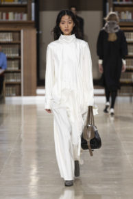 Nestled inside the historic reading rooms of the Richelieu site, the runway carved a path through soaring bookshelves stacked with centuries of wisdom—proof that both librarians and fashion designers share a deep love for layers. Like pages stacking in a vast archive, each moment leaves a trace. The collection explores the notion that moments don’t fade away; suggesting that nothing truly disappears; it folds into what comes next.