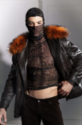 Dark leopard print creeps across full looks, and faux fur trims hoods and sleeves, asserting these nocturnal characters as primal, animal-like individuals. Laser cutting reveals skin and creates shadow, while embellished shirts and stilettos glint beneath streetlight.